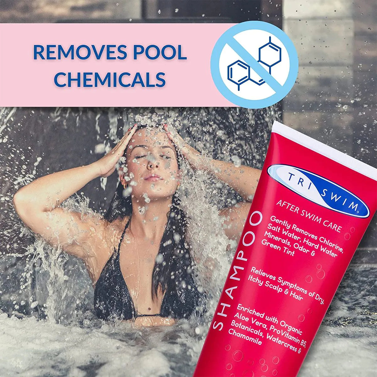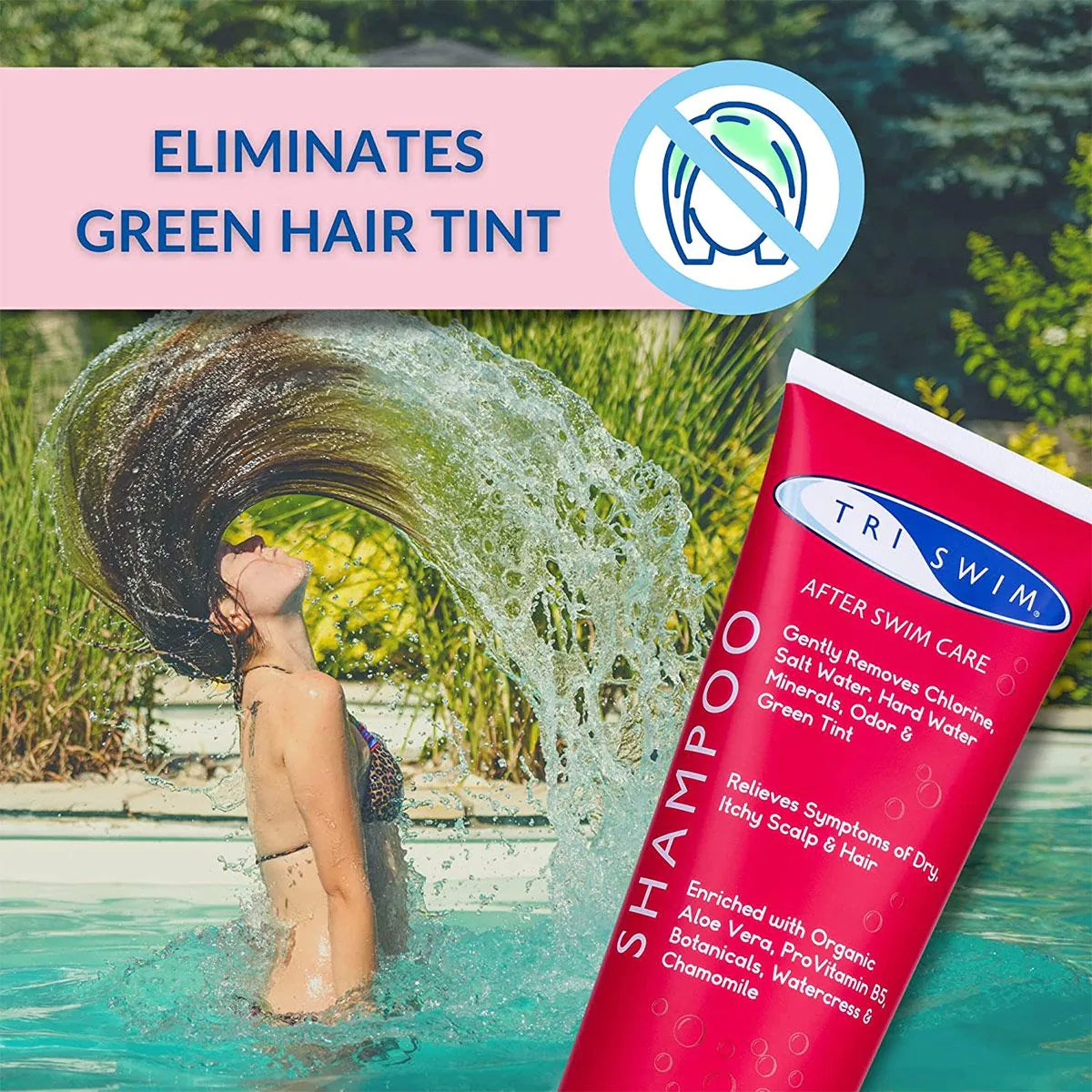 TRISWIM aitab neutraliseerida ja eemaldada kloori, broomi, soolasid, karevee mineraale ja muid keemilisi lõhnasid juustest. TRISWIMi šampoon taastab ja rahustab klooriveest kuivasid juukseid, jättes need mõnusaks ja terveks.